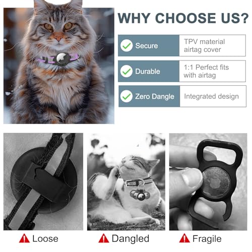 [LIGHTWEIGHT & COMFORTABLE] This Apple Tag collar is made of well-sewn nylon that won’t scratch your cat’s skin. And the lightweight AirTag holder is made of TPV, your cat will not experience any discomfort from wearing it for long periods of time.