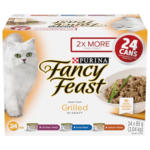 Fancy Feast Grilled Wet Cat Food, in Gravy Variety Pack 3 Flavours – 85 g Can (24 Pack)