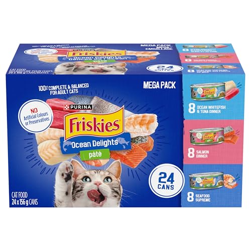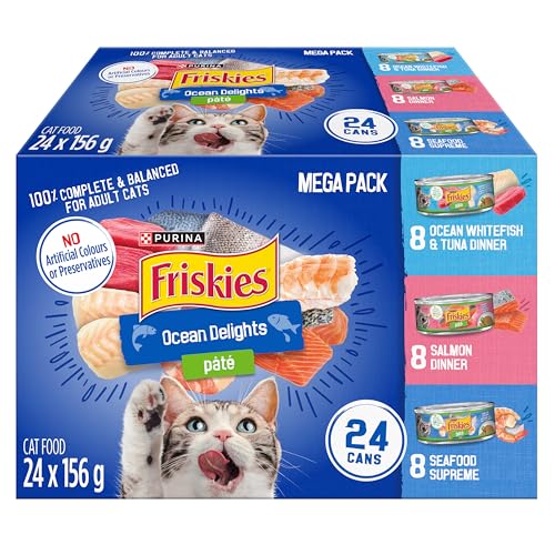 Friskies Ocean Delights Wet Cat Food, Pate Variety Pack 3 Flavours – 156 g Can (24 Pack)