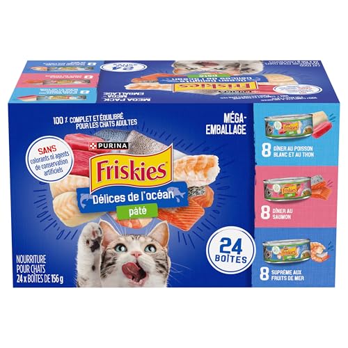 Friskies Seafood Variety Pack Cat Food is full of discovery and wonder. Features a delectable variety of delicious flavors including salmon, tuna and whitefish in a smooth, pleasing texture that will have your cat eagerly anticipating mealtime every day.Contains: Salmon Dinner, Seafood Supreme, Whitefish and TunaFriskies Pate Whitefish and Tuna Dinner is formulated to meet the nutritional levels established by the Association of American Feed Control officials (AAFCO) Cat Food Nutrient Profiles for growth of kittens and maintenance of adult cats. Friskies Pate Salmon Dinner is formulated to meet the nutritional levels established by the Association of American Feed Control officials (AAFCO) Cat Food Nutrient Profiles for growth of kittens and maintenance of adult cats. Friskies Pate Seafood Supreme is formulated to meet the nutritional levels established by the Association of American Feed Control officials (AAFCO) Cat Food Nutrient Profiles for growth of kittens and maintenance of adult cats.