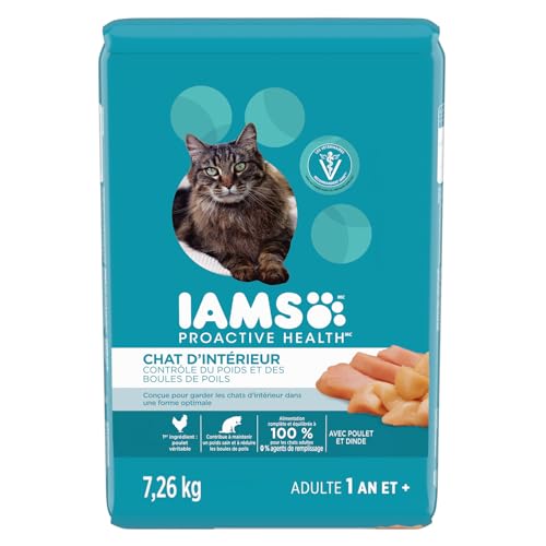 IAMS PROACTIVE HEALTH Indoor Weight & Hairball Care Adult Dry Cat Food – Chicken & Turkey – 7.26KG (16LB) Bag