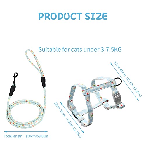 Premium Material: The cat harness and leash set is made of high-quality soft cotton, which is strong and durable, breathable without restraint, making your pet feel comfortable while exercising.
