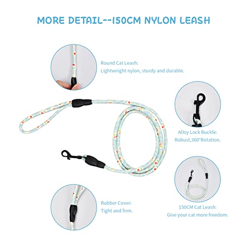 Size: S (chest circumference: 24-34cm; neck circumference: 19-26cm) is suitable for cats within 6 pounds. M (chest circumference: 32-49cm; neck circumference: 22-35cm), suitable for cats weighing 6-15 pounds. The leash length is 150cm.