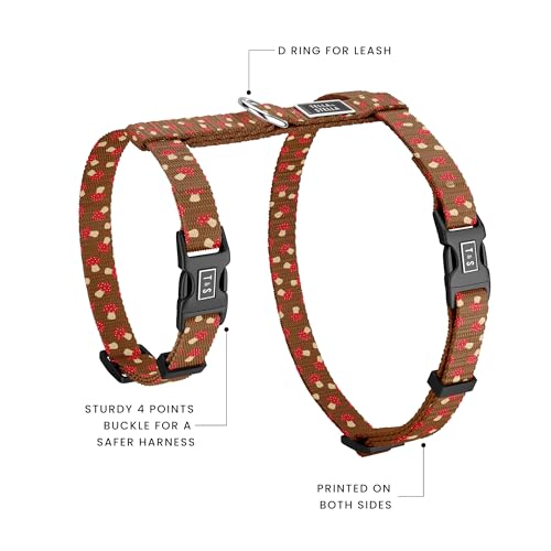Tella & Stella Escape Proof Cat Harness for Walks – Adjustable Fit for Neck 7 in to 12 in & Chest 10 in to 17 in – Lightweight, Soft, and Comfortable Design – 4-Point Safety Buckles (Mushroom)