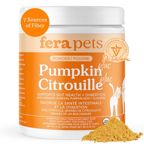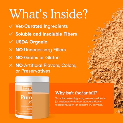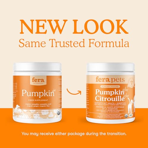 Fera Pets Cat & Dog Pumpkin Plus – Fiber Supplement – USDA Organic – Supports Gut & Digestive Health – Promotes Regularity – 7 Sources of Fiber – 90 Scoops