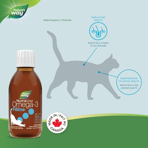 Nature’s Way NutraSea Omega-3 Feline Supplement for Cats – 300 mg EPA + DHA – Helps Support Skin & Coat Health and Overall Maintenance of Good Health – Ocean Fish Flavor – 140 mL