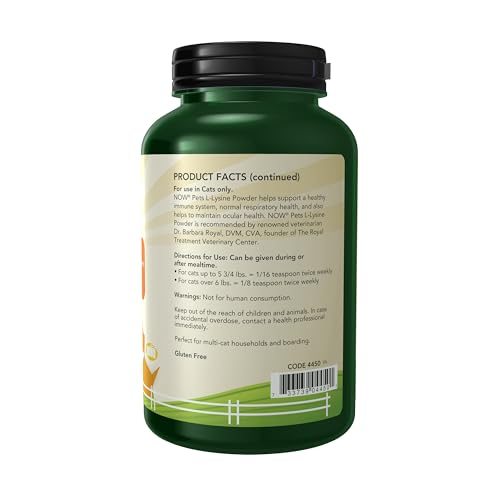 Now pets l-lysine powder helps support a healthy immune system, normal respiratory health, and also helps to maintain ocular health. Now pets l-lysine powder is recommended by renowned veterinarian dr. Barbara royal, DVM, CVA, founder of the royal treatment veterinary center. For use in cats only. Perfect for multi-cat households and boarding.