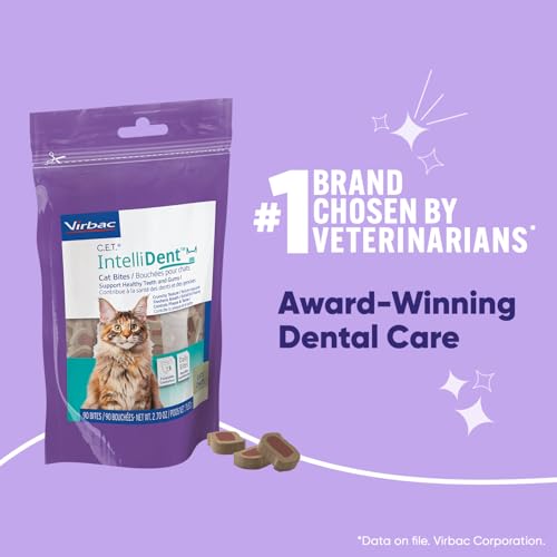 Virbac C.E.T. IntelliDent Cat Bites Dental Care Cat Treats for Healthy Teeth and Gums Fresh Breath Chicken Flavor 90 per Bag