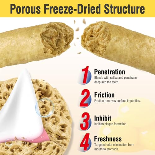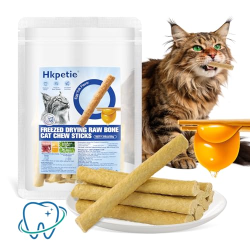 30g Freezed Dried Cat Chew Stick Egg Yolk Flavor, Cat Dental Treats for Reduce Tartar and Freshens Breath, Feline Teething Sticks Cats Treats Snack