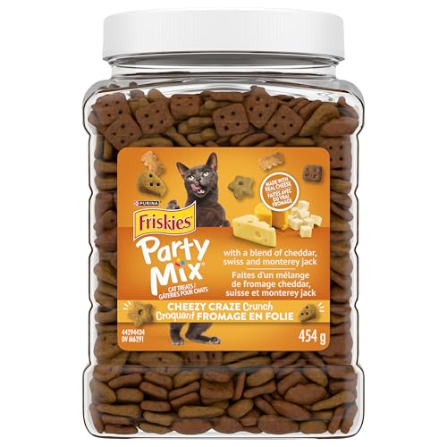 Friskies Party Mix Cat Treats, Cheezy Craze Crunch with Real Cheese – 454 g Cannister (1 Pack)