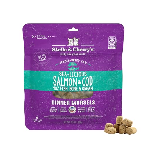 Stella & Chewy’s Freeze-Dried Raw Cat Dinner Morsels – Grain Free, Protein Rich Cat & Kitten Food – Sea-Licious Salmon & Cod Recipe – 99g Bag