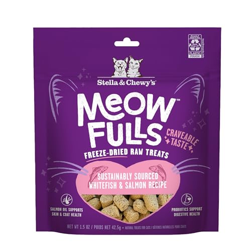Stella & Chewy’s Meowfulls Freeze Dried Cat Treats Whitefish & Salmon Recipe, 42.5g Bag