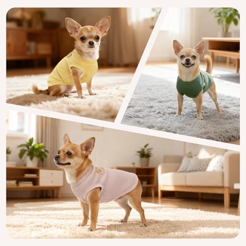 3 Pack Shirts for Cat, Small & Medium Dog Clothes, Waffle-Knit Puppy Shirts, Lightweight, Breathable, Stretchy Pet Clothes, Sleeveless Tee Shirt Gift for Cats & Dogs