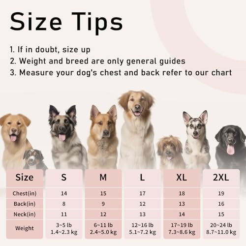 【Size Selection Tips】For the perfect fit, use chest size as your key measurement—do not rely solely on weight or breed. Sizing varies across brands, so please consult our size chart. For reference: Our pet Anne ( Bichon 5.5lb) wears size Small—back 9.5″ chest 11.8″, neck 7.9″.