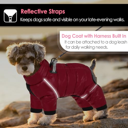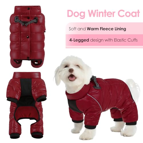 AOFITEE Dog Coat, Waterproof Dog Jacket for Winter, Warm Fullbody Dogs Snowsuit, Winter Coat for Small Dogs, Zip Up Pet Puffer Jacket Fleece Vest, Outdoor Reflective Pet Coats, Christmas Red, S