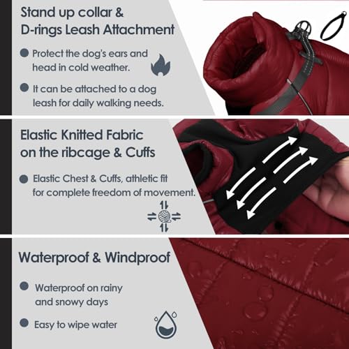 WARM COLLAR AND ELASTIC CHEST & CUFFS DESIGN – This dog puffer jacket with stretchy design on chest and cuffs offers sung fit. Four-leg style and turtleneck design offers extra protection, keeps your dog warm and comfy in nippy weather. Lightweight and well made small dog cold weather coat easy to clean and store.