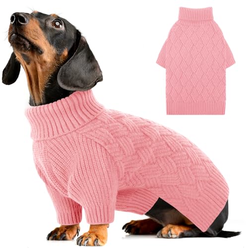 AOFITEE Small Dog Sweater, XS Dog Sweater, Warm Dogs Christmas Sweaters, Dogs Winter Sweaters for Small Pet Girl Boy, Turtleneck Thick Puppy Apparel Female Male for Yorkie, Chihuahua, Pink, XSmall
