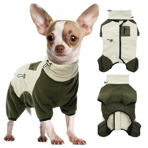 【Multiple Usages Puppy Onesie】Suitable for dog’s daily jogging, walking, strolling, running, fetching, hiking, sleeping and other outdoor and indoor activities. Perfect small boy girl dog fleece coat jumpsuit for colder months. The patchwork color makes the dog look stylish and handsome in the costume, an ideal piece for events like parties and family photoshoots.
