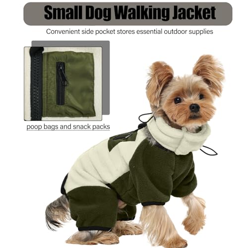 DENTRUN Small Dog Winter Coat Warm Fleece Jacket, Removable Turtleneck Dog Cozy Sweater Puppy Cold Weather Outfit Windproof Costumes, Small Breed Pets Apparel Dog Fleece Onesies Soft Woolly Pajamas