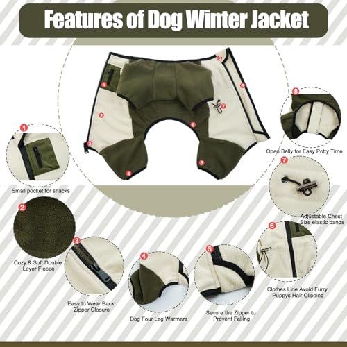 【Warm Cozy Dog Winter Fleece Jacket】Puppy cold weather outfit uses the soft & comfortable double-layer thick polar fleece fabric, which has good wind proof warm performance. This dog winter coat wraps the dog’s four legs can protect the dog’s limbs warm, which is a necessary cold winter dog leg warmers clothing. Both the neck and chest of the dog coat are designed with adjustable elastic bands, and the vulnerable puppy is wrapped all over the body for more effective warmth.