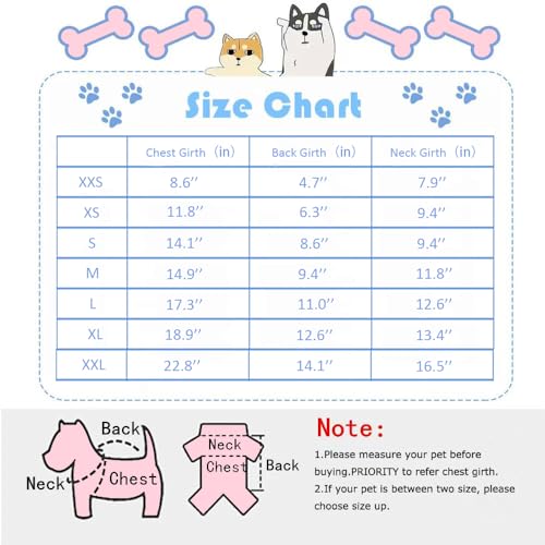 WARM TIPS — This hoodie is suitable for small dogs and cats. Please measure your pet carefully according to our size chart before buying. ( Don not choose the usual size of your pets )