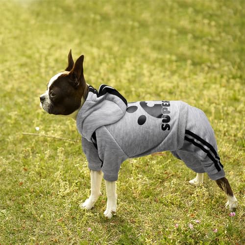 Dog Hoodie 4 Legs Jumpsuit for Small Dogs Puppy Clothes Dogs Pullover Sweatshirt Cotton Doggie Winter Coat Cat Apparel (XX-Small, Grey)