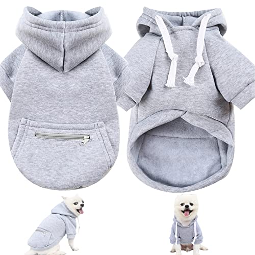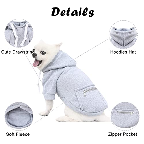 Dog Hoodie Pet Clothes for Dog Cat Dog Sweaters Small Breed Fashion Puppy with Fruit Snack Zipper Pocket Dog Cat Drawstring Sweatshirt (Grey, Small)