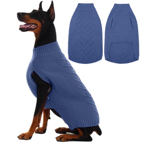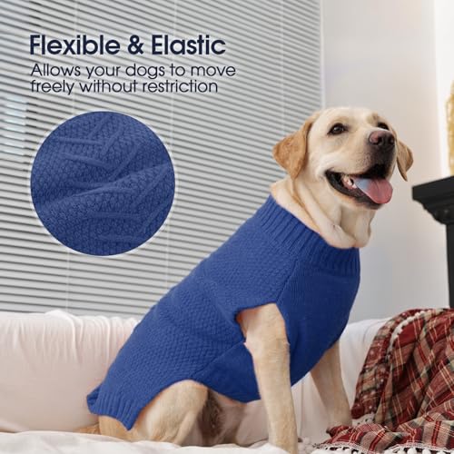 IECOii Dog Sweaters for Large Dogs,XXL Dog Sweater Warm Pullover Vest for Winter,Knitted Dog Sweater Large Size Dog Sweatshirt for Extra Large Dogs boy Girl,Golden Retriever,Pitbull,Blue-2XL