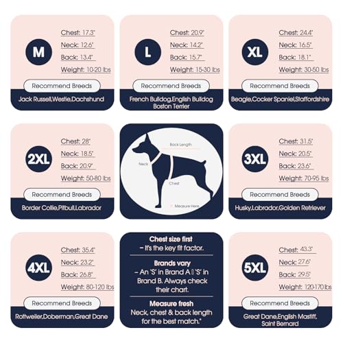 M-5XL:Our dog sweater is designed for medium and large breeds,with sizes available from M to 5XL.Suit for Schnauzers,French Bulldogs. Beagles,Corgis,Weimaraners,Border Collies,Golden Retrievers,Labradors,Great Danes, Rottweilers, and Dobermans