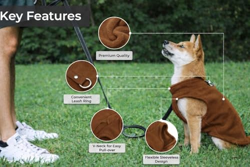 JACKO & CO – Fleece Vest Sweater with Leash Ring – Soft Lightweight Breathable for Puppies Small Medium Dogs, Kitten, Cats, Chihuahua – Warm for Fall/Autumn/Winter (Chocolate Brown, L (10-16lbs)