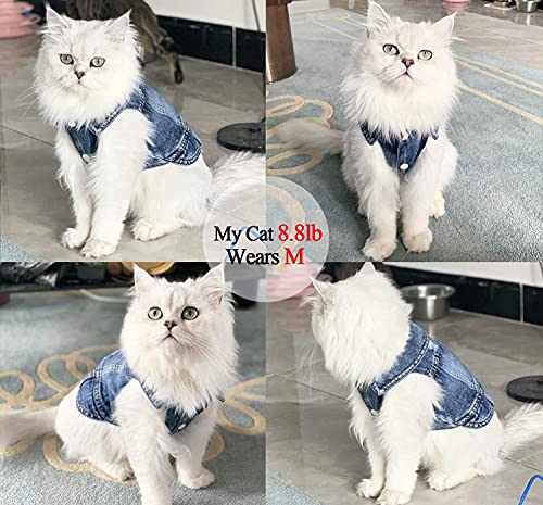 Jean Jacket, Puppy Blue Denim Lapel Vest Coat Costume, Dog T-Shirt Clothes, Cool and Funny Apparel Outfits, Machine Washable Pet Outfits for Small Medium Dogs Cats (XS)
