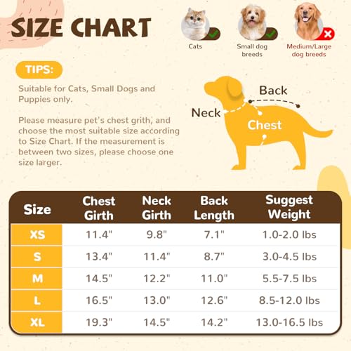 Hoodie for Small Dogs Puppies Cats Girl Boy: This small dog outfits is available in 5 sizes, from XS-XL, fit for cats, kittens, doggies, puppies and small dogs, such as Chihuahua, Pomeranian, Dachshund, Maltese, Shih Tzu, Pug, Yorkie and so on. Please measure your pet’s chest girth to choose the most suitable size. If it is between 2 sizes, please get one size larger