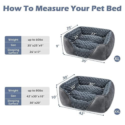 INVENHO X-Large Dog Bed for Large Medium Small Dogs, Rectangle Washable Dog Bed, Orthopedic Dog Bed, Soft Calming Sleeping Puppy Bed Durable Pet Cuddler with Anti-Slip Bottom XL(35″x25″x10″)