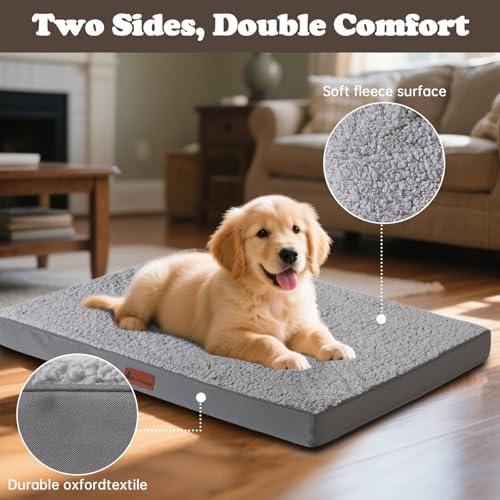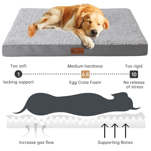 JOLLYVOGUE Dog Bed Large, Orthopedic Dog Bed Support Egg Crate Foam Dog Beds, Soft & Cozy Pet Bed Mat with Removable Washable Cover (Large, Dark Grey, Up to 75 lbs)