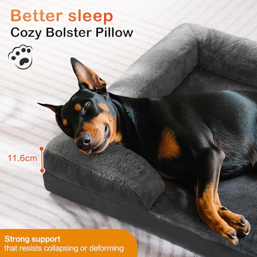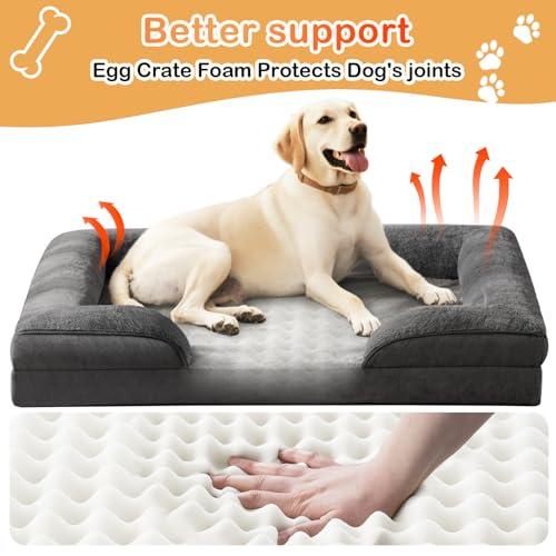 VERZEY Orthopedic Dog Bed for Medium Size Dogs with Egg Crate Foam Support – Waterproof and Removable Washable Cover,Pet Sofa Bed with Nonskid Bottom for Medium/Large Dogs (91×68.5×16.5cm)