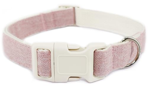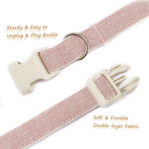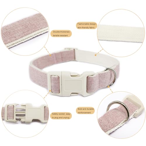 Cotton Hemp Dog Collar Adjustable, Pink Dog Collar Soft Natural Fabric with Quick Release, Cute Wedding Puppy Necklace for Small Medium Large Dog, Pink-S