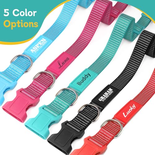 Custom Reflective Dog Collar with UV Printed ID Tag – Personalized Safety Collar for Small Medium Large Dogs, Adjustable Nylon Pet Collars (Reflective)