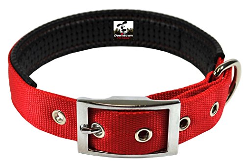 Deluxe Adjustable Thick Comfort Padded Dog Collar, Medium, Red, by Downtown Pet Supply