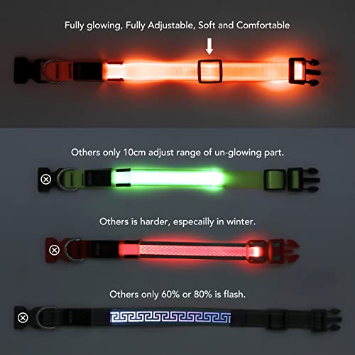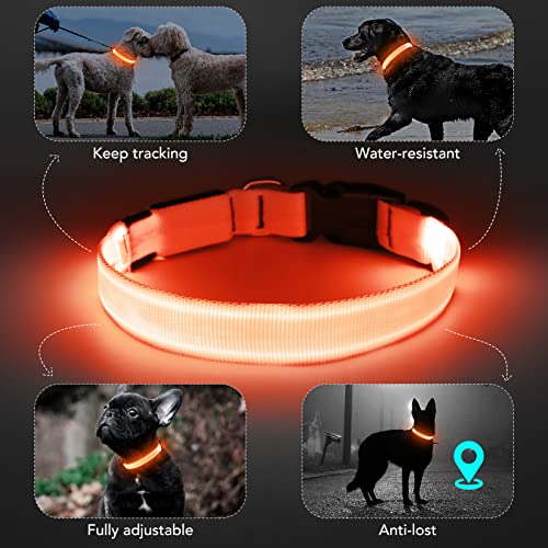 Light Up Dog Collar at Night, Led Dog Collar Adjustable, Lighted Dog Collar Rechargeable Waterproof, Dog Lights for Night Walking, Glow in The Dark Dog Collars Light for Medium Large Dogs (L, Orange)