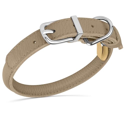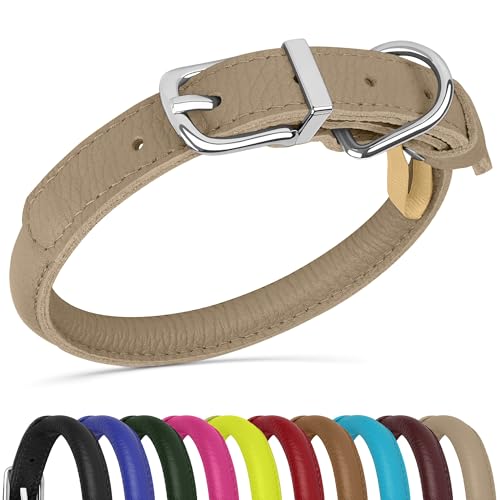 OOPSDOGGY Rolled Leather Dog Collar Soft Roll Collars for Small Medium Large Dogs Puppy (Beige, L, 14″-18″)