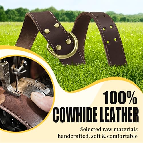 QRDA Leather Dog Collar Brown Dog Training Collar Heavy Duty Premium Leather Dog Collar Dog Collars for Medium/Large Dogs