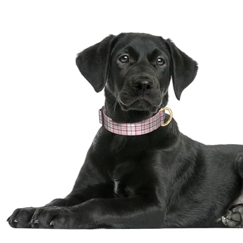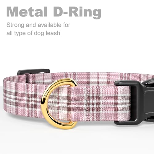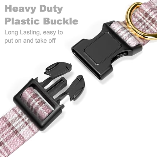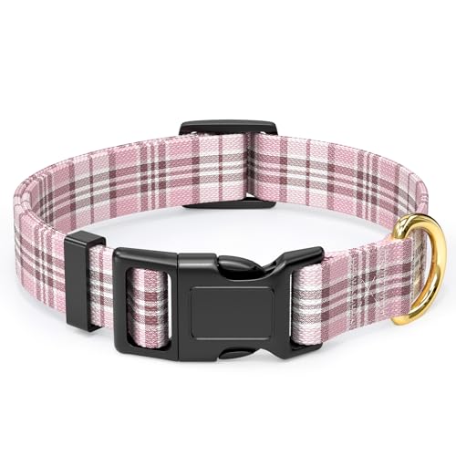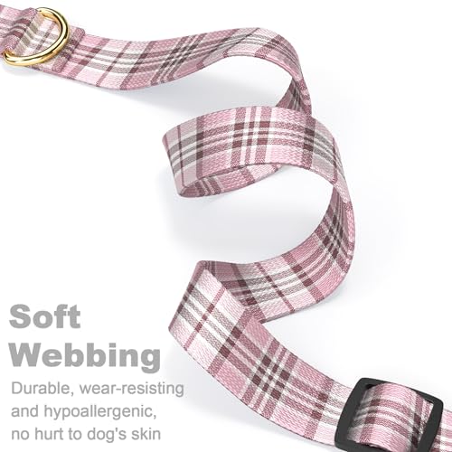 Rnivvi Dog Collar, Adjustable Nylon Dog Collar for Large Dogs, Cute Puppy Collar for Boy and Girl Female Dogs, Soft Heavy Duty Pet Collars with Quick Release Buckle for Walking Running, Pink Tartan