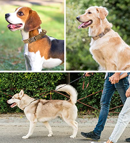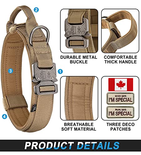 Tactical Dog Collar for Large, Medium Dog, Military Dog Collar Heavy Duty with Canada Flag and 2 Patch, (L (18″-21.5″), Brown)