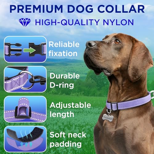 TECEUM Reflective Dog Collar – Lavender – M – Extra Soft Padding – Basic Nylon Dog Collar – Quick Release Buckle – Fits Small, Medium and Large Dogs, Puppies, Cats – ESA & Service Dog Options