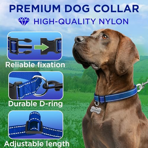 TECEUM Reflective Pet Collar – Navy Blue – XL – Extra Soft Padding – Basic Nylon Dog Collar – Quick Release Buckle – Fits Small, Medium and Large Dogs, Puppies, Cats – ESA & Service Dog Options