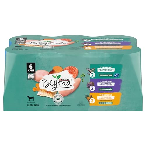 Offer your dog a variety of grain free food options with this Purina Beyond Grain Free Ground Entrees adult wet dog food variety pack. Each can in this pack features real poultry or fish as the #1 ingredient, so you can rest easy knowing he’s getting wholesome meals made with high-quality ingredients you know and trust. With real, recognizable ingredients plus essential vitamins and minerals in every serving, this natural wet dog food gives him the nutrition he deserves in delicious grain free recipes you want for your canine companion. This Purina Beyond collection includes three different recipes in every package, making it easy for you to mix things up at mealtime while still tending to his nutritional needs. Each ingredient in this dog food can be traced back to our trusted sources. Give your faithful friend a natural meal you can trust with every delicious selection in this Purina Beyond wet dog food variety pack. Give your canine the deliciousness he deserves to satisfy his cravings with an order of this Purina Beyond variety pack.