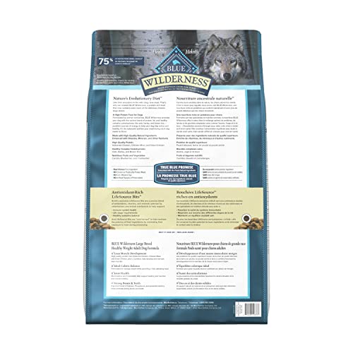 Blue Buffalo Wilderness More Meat & Wholesome Grains Natural Dry Dog Food, Large Breed Healthy Weight Chicken 24lb