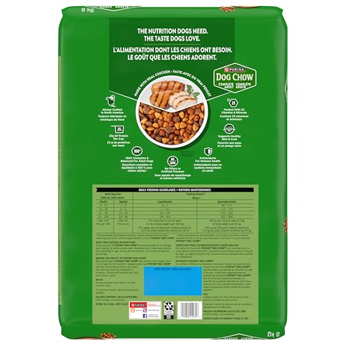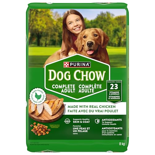 Dish up daily servings of Purina® Dog Chow® Complete Adult with Real Chicken dry dog food to give your dog the essential nutrition they need to keep up with you and your healthy life together. This delicious food for dogs made with real chicken and other high-quality ingredients is carefully crafted to support your dog’s health and has a taste dogs love. This highly digestible, original pet food is made to provide the 100 percent complete and balanced nutrition adult dogs need to help them live long, healthy lives. Nutritious ingredients and high-quality protein for strong muscles support an active lifestyle that helps keep your dog happy and healthy, while crunchy kibble helps remove plaque and offers a delightful texture. You can feel confident in the dogs’ food you serve your best friend because Purina Dog Chow is carefully crafted by employees who trust it enough to feed it to their own dogs.