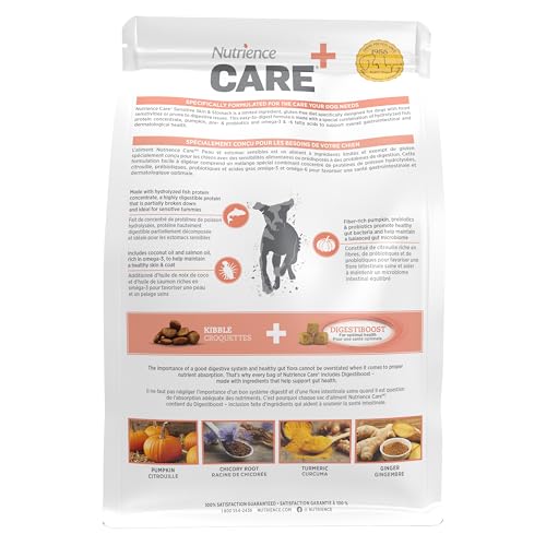 Nutrience Care Sensitive Skin & Stomach Hypoallergenic Adult Dog Food, 10 kg (22 lb), Salmon & Pumpkin, Grain & Gluten Free, Fresh Canadian Protein, Dry Dog Food, Nourriture Pour Chien