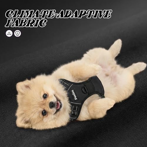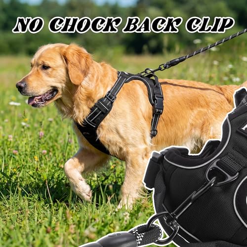 Funfox Dog Harness Medium Breed, No Pull Dog Harness Adjustable with Handle Easy Control, Durable Materials 2 Clips Harnais Pour Chien Reflective Strips Pet Vest for Night Walking Black M